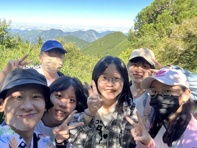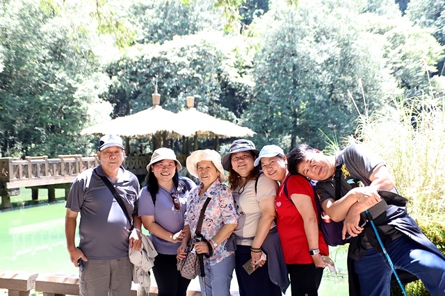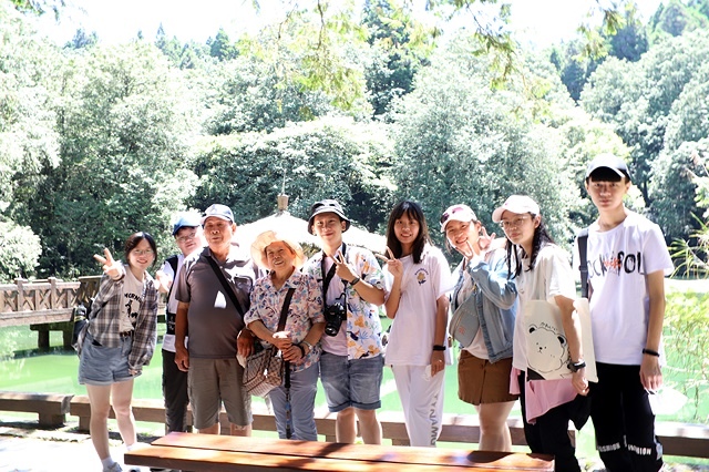 就這樣~邊走邊拍照~一路走到姊妹潭來,這裡著名的地標就是相思亭,按慣例!來帶一張團體照~