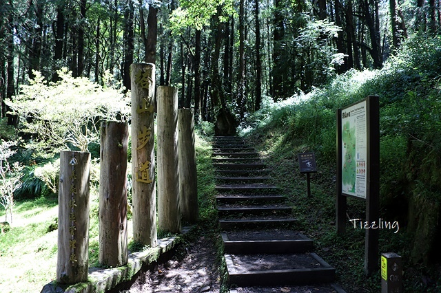 走著走著~來到阿里山受鎮宮附近,再回頭一望,綿綿而上的石階,兩側迎賓原始森林樹木,風景真美~