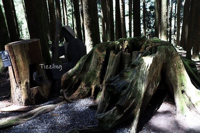 步道均有可愛地景裝置藝術,利用廢棄的木材雕刻,呈現當年▼伐木工工作模式,讓來訪的遊客可以簡易的體會當年的工作辛苦~