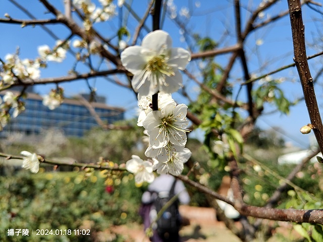 在梅花盛開下,玫瑰園上層都是白色的花海,慢步在其中,絲絲聞到梅花的香氣,讓人觀看又覺得眼花撩亂,卻又難以抗拒花海的誘惑。