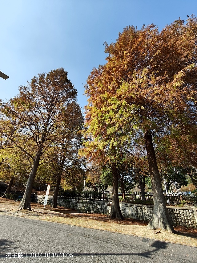 這裡的落羽松樹木有點高大,不管是夏天的綠意濃郁,秋冬的金黃橙紅,每次來拜訪,都會有截然不同的風采,尤其在陽光的照耀之下,欣賞落羽松,好像是為冬日增添了一抹暖意。