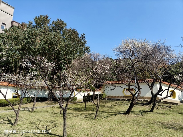 當你踏入士林官邸內的玫瑰園,像是來到了玫瑰花聖地,這裡的梅花正在盛開,在一月的季節,梅樹上素淨的白梅,像是下落的白雪,和玫瑰粉紅相映襯,甚美~