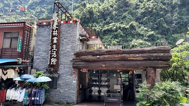 一旁有烏來林業生活館(無料參觀),裡面展示早年伐木工具+原住民工藝,還能邊看邊吹冷氣超舒服,還能走到 2樓戶外區,更近距離對瀑布自拍一波,背景超殺、怎麼拍都好看~